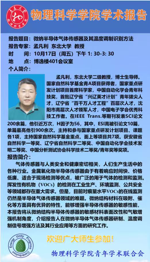 [学术预告]孟凡利-微纳半导体气体传感器及其温度调制识别方法